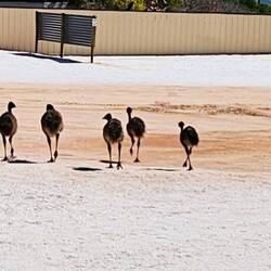 Fasch 400 Kilometer si mer hüt gfahre. Viel isch gradus gange u d Umgäbig geng glich. Uf em Campingplatz si d Emus umenandgloffe. Äs chuttet wi blöd.