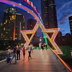 Mir si am Morge id Stadt. Hüt wirds 37 Grad. Zersch si mer zum Märit und hei öppis Zmorge gässe. Dr Märit isch riesig. Si hei wunderschöni Frücht u schöns Gmües gha. Am Nami hei mer ä Flussfahrt uf em Yarra River gmacht. Nähr si mer zum Eureka Turm, 297,3 Meter höch. Dr Lift geit 88 Stockwärk ufe irä mega Gschwindigkeit. Dobe cha me d Ussicht runfum gniesse. Nach em Znacht hei mer d Belüchtig vo dere Stadt bestuunt. Merry christmas😆Read more