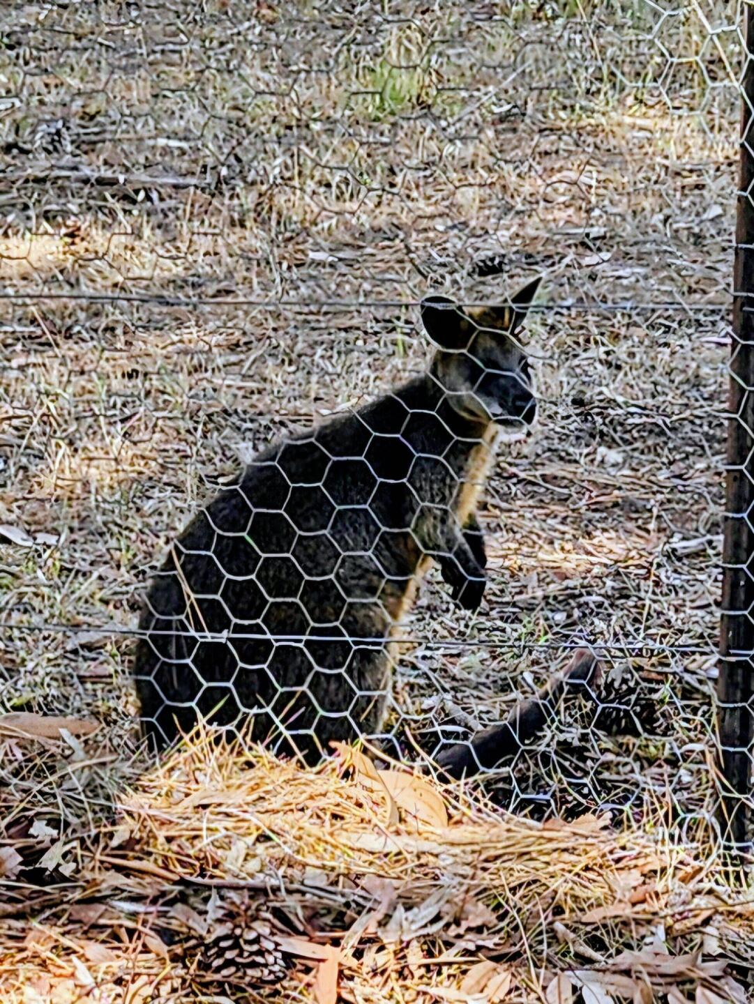 Mir si knapp 240 Kilometer ids Landesinnere gfahre. Hie si mer uf em ne wunderschöne Platz mit vielne Böim und em ne gwaltige Vogelkonzärt. Grad näbedra hets es Gheg mit Wallabies. DRead more