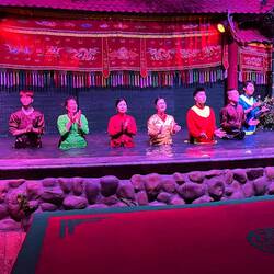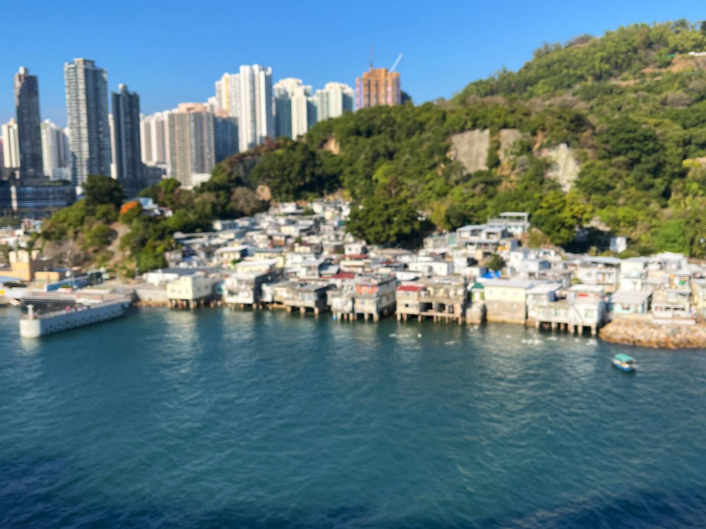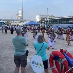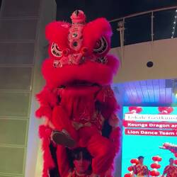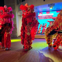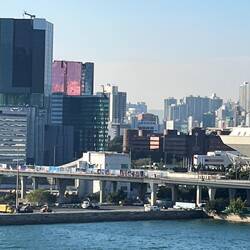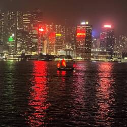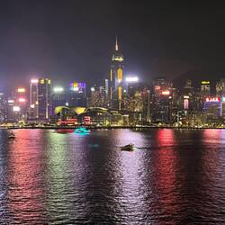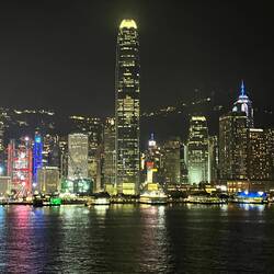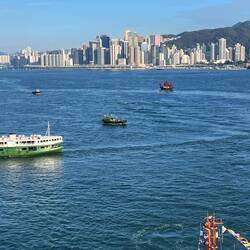 Einfahrt nach Hongkong bei strahlend schönem Wetter. Wir liegen mitten in der Stadt. Die beleuchtete Skyline liegt vor uns. Abends Löwentanz mit lokaler Tanzgruppe am Pooldeck. Heute mal erste Reihe.