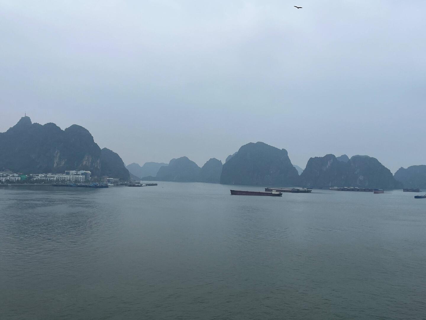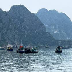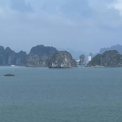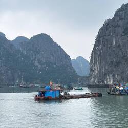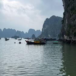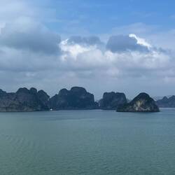 Der Kapitän sagt, es wird ein brauchbarer Tag. Also nichts wie los in die Halong Bucht. Es bleibt grau und wir bekommen nur einen verschwindend kleinen Teil der schönen Bucht zu sehen.