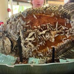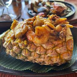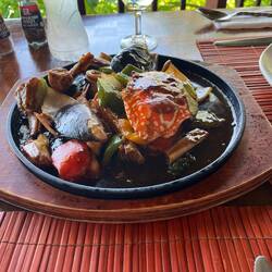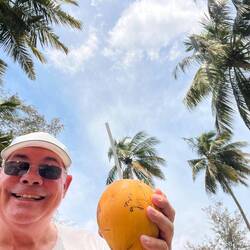 Heute nehme ich mir eine Auszeit wegen Schnupfen, fühle mich krank und brauche eine Pause. An Bord erwischt es jeden mal. Heinz macht den Ausflug allein. Gewürzgarten, Strand und Tempel.