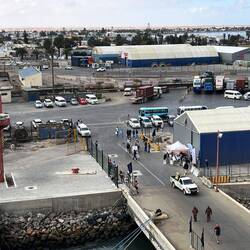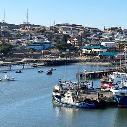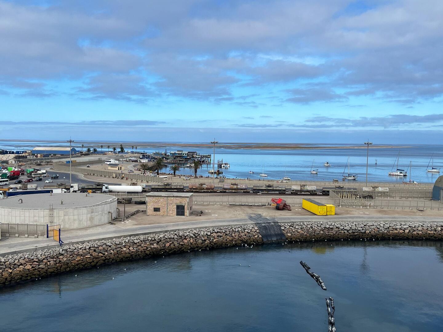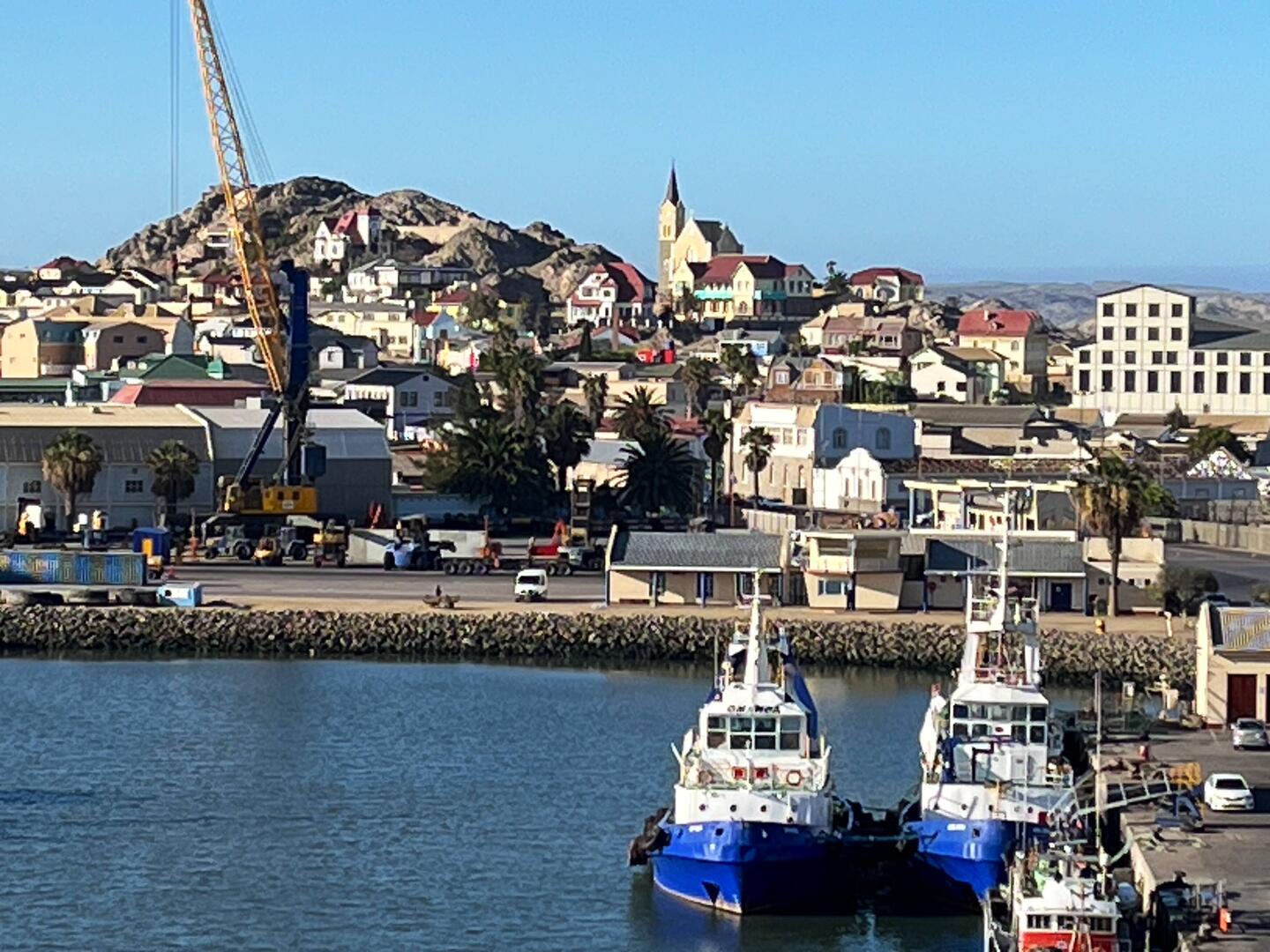 Ein für uns neuer Hafen. Seit einem Jahr verlangt Namibia hohe Eintrittspreise. Die höchsten, die ich bisher erlebt habe. Ein 90 Tagesvisum kostet ca. 80 Euro. Es gibt Tagesvisa für KreuzfahrerLeia mais