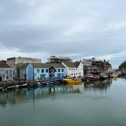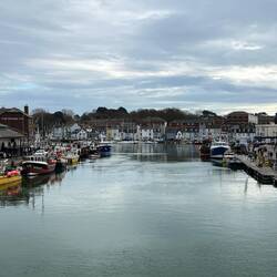 1. Hafen zum Üben. Klappt alles gut. Passkontrolle easy, Shuttle Bus nach Weymouth, einem alten englischen Seebad steht bereit. Regen hat auch aufgehört, der eine oder andere Sonnenstrahl verirrt sich. Ein englisches Seebad im November bietet viel frische Luft und dann ein warmes Plätzchen im Pub Black Dog.