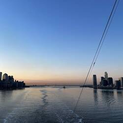 Die New York Einlaufparty beginnt morgens um 6 Uhr mit Hot Dogs am Pooldeck. Eiskalt ist es hier. Sich der Stadt von der Wasserseite zu nähern ist besonders schön. Ich lasse einfach die Bilder sprechen.