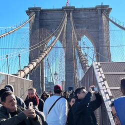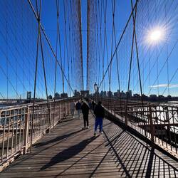 Bei strahlendem Sonnenschein spazieren wir über die Brooklyn Bridge. Diese Idee hatten ein paar andere auch. Per Zufall landen wir noch im Grand Central, dem beeindruckenden Hauptbahnhof. Schon wieder 11000 Schritte an einem halben Tag. Später dann die spektakuläre Ausfahrt aus New York. Ein echtes Highlight..