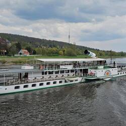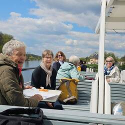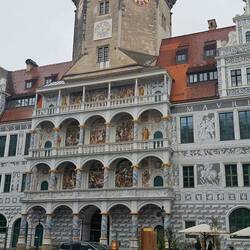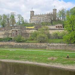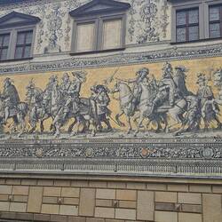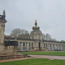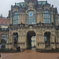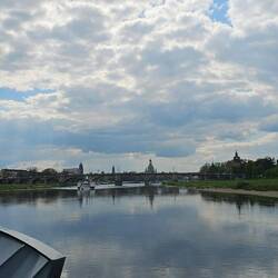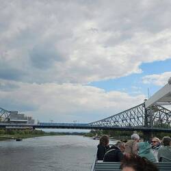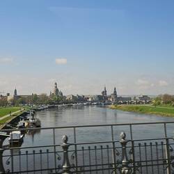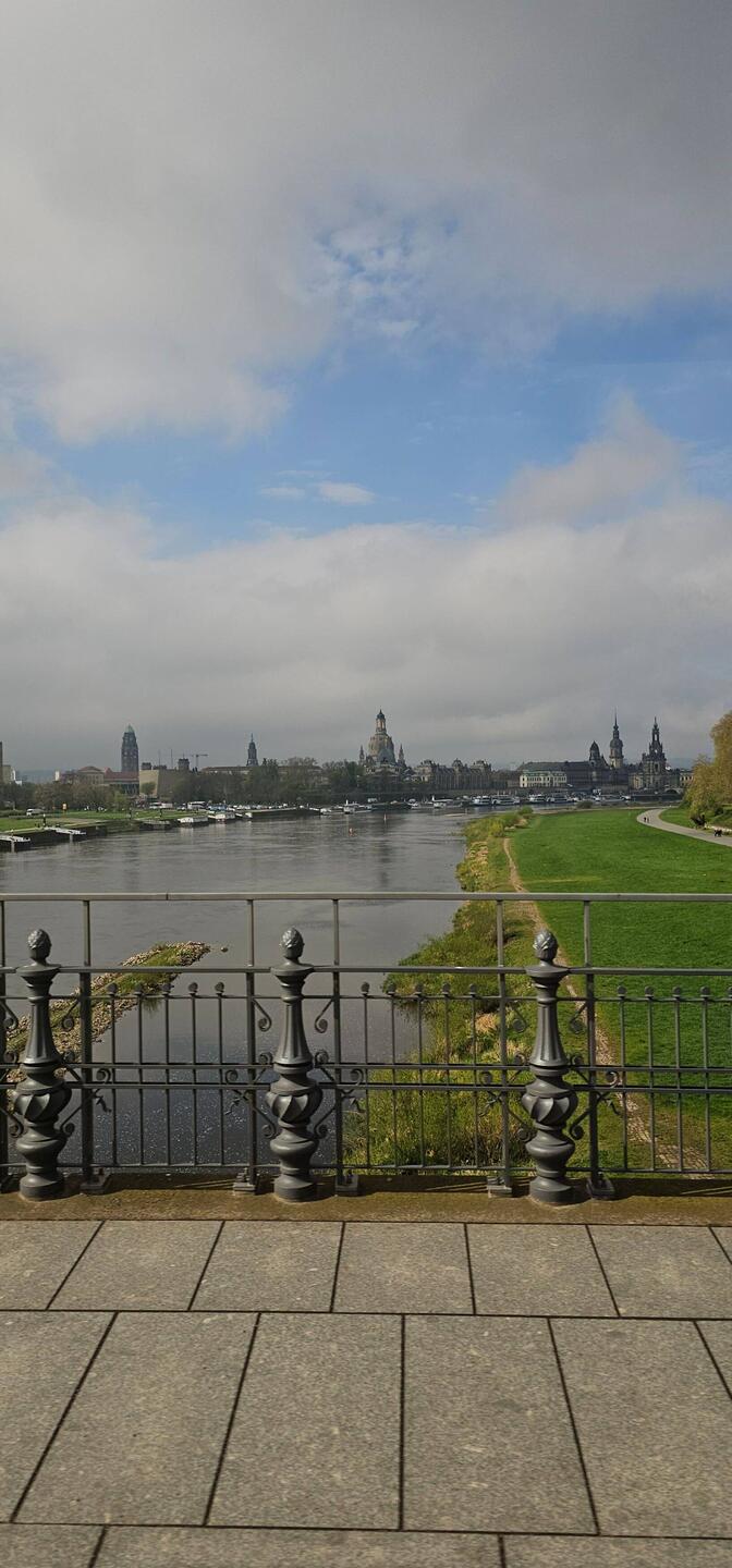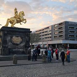 Mit unserm Reiseleiter geht's um 10 Uhr los, in einem kleinen Bus besichtigen wir die Neustadt von Dresden, das Elbufer, die Brücken und fahren zu den Elbschlössern. Spaziergang durch denLæs mere