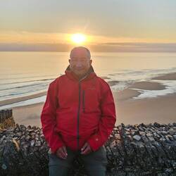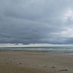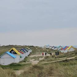 Bei bedecktem Wetter heute den Pointe d Agon besucht, endloser Sandstrand, mit Austernbänken. Auf der Rückfahrt die farbigen Häuschen in Gouville bestaunt.