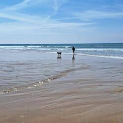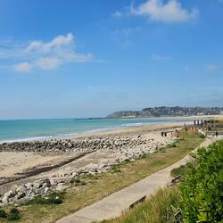 Letzter Tag bei wunderbarem Sonnenschein, an meinem Lieblingsstrand verbracht. Mussten weit laufen um ans Meer zu kommen, da heute abend Grand maree. Jetzt packen, morgen geht's heimwärts. TschüssLue lisää