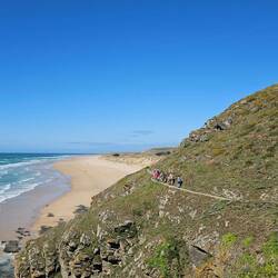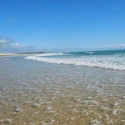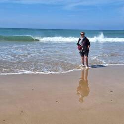 Mittags Wanderung rund ums Cap Carteret bei schönstem Wetter. Die Mutigen schwimmen bereits im Atlantik, mir reichen nasse Füße