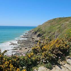 Morgens besuch der Töpfer Ausstellung in Port Beil in der alten Kirche. Mittags die Schlossruine von Saint Saveur umrundet. Da sich die Sonne dann doch noch zeigt, Apero im Carpe Diem. ZurLue lisää