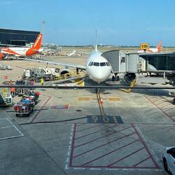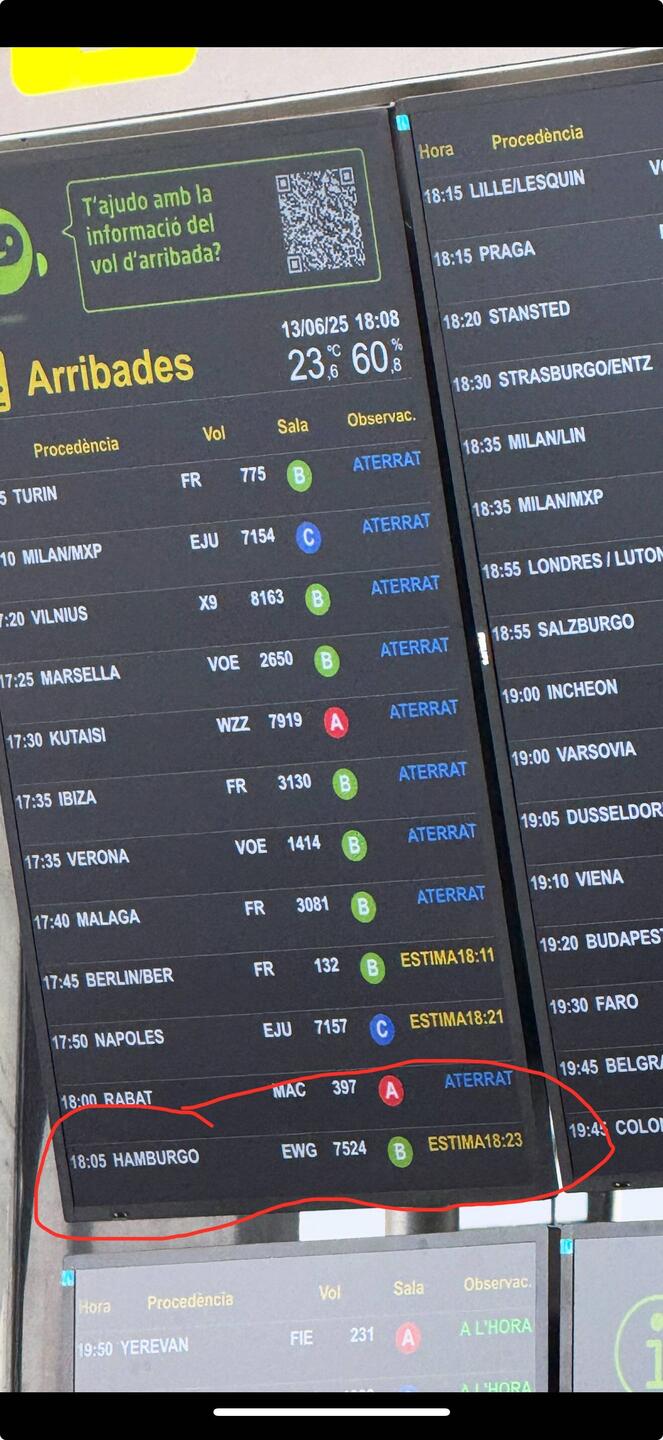Wir warten auf 🐭. Der Flieger hat ein wenig Verspätung. Sonst wären wir zeitgleich in Barcelona gelandet 😂