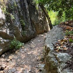 Erstmal ca.600 Meter abwärts über Steintreppen und Naturwegen..