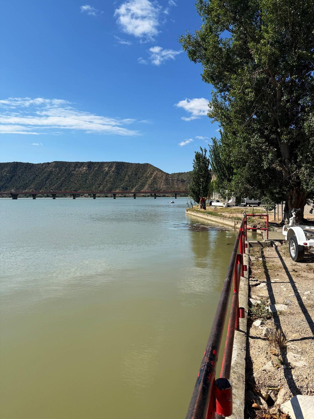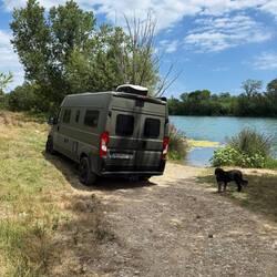 Keine Menschen, dafür viel Wasser viel Natur und Parken direkt am Ufer.