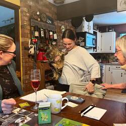 À 10h on avait rendez-vous chez Karin. C’est une fille de Jackie. On a mangé le petit déjeuner ensemble. Taylor avait préparé un pain perdu (French toast casserole) avec le reste de tresse deLäs mer