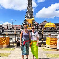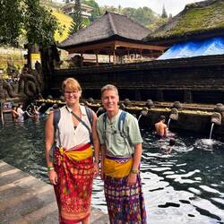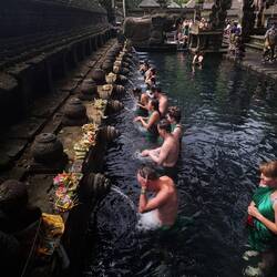 Wir fuhren weiter zum „Pura Tirta Empul Tempel“, ein alter hinduistischer Tempel mit einer heiligen Quelle. Tempel in Bali dürfen von Männern und Frauen nur mit einem Sarong betreten werden.Read more