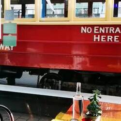 For lunch we went out for Thai at The Nook Eatery on Regent Street . I had Pad Thai. It was delicious. In the video we saw a tram go past while we were in the restaurant.