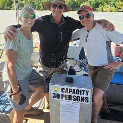 Our guide did a great job making them jump. He showed us a nasty croc scar on his right arm that he got after a croc pulled him into the water years ago. 😳