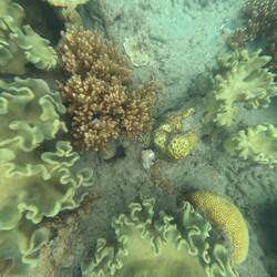 Morning snorkel in a bay on the north side of Border Island. As you can see from the pictures the water quality was a little cloudy. We were told the water quality changes with the weather.