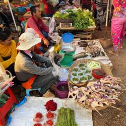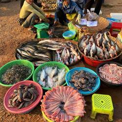 We had a quiet morning before catching a tuk-tuk into town to visit Mrs Pisey’s fabric stall in the market for silk. Lunch was at Khmer Kitchen.