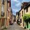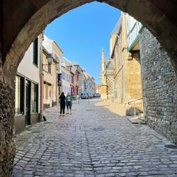 Arrived and got a spot in the Aire by the old city walls. Walked up the steep ramparts to find a lovely lunch in the town square. Lovely medieval grid. Got rather wet so back to the van to dry off!