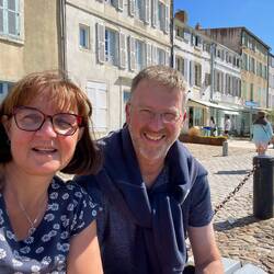 We cycled to St Martin and parked outside the town to let Winston have a run on the beach. There was a swim-run race on, so town was busy. We had lunch overlooking the harbour. When we got back TracyRead more