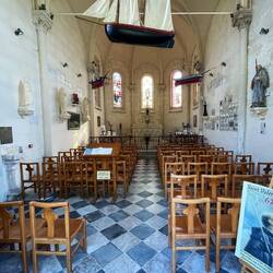 Walked up to Chapelle des Marins (note the hanging boats!), from where there was a lovely view of Cap Hornu. Then down to the beach for a coffee and our anniversary lunch 🥰
