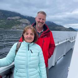 We set out into the fjord on a very smart cruiser. We went past islands, ex-copper mines, goats, waterfalls and the main event Pulpit Rock!! Well we assume it was up there as the cloud was too low forLäs mer