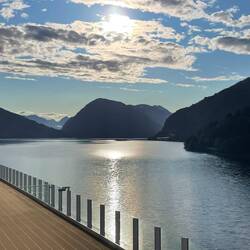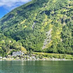 Onto the catamaran and straight upstairs to the open deck for a wonderful cruise along one of the most famous and beautiful fjords. We saw many soaring peaks and waterfalls as well as some very remoteLäs mer