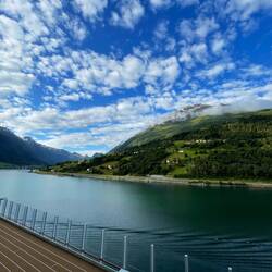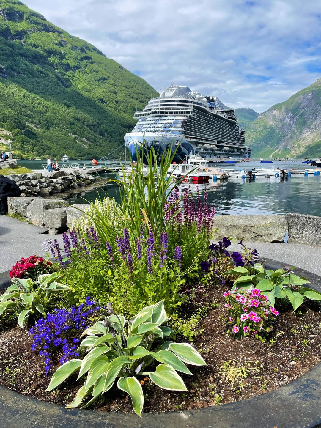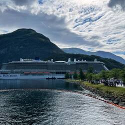 This is the biggest ship we have been on but Iona is lovely and spacious. Joan and I joined the choir for a sing this morning then we all had a talk on Norway in the afternoon. The food is excellent,Läs mer