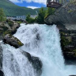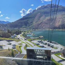 A short bus ride to the Loen sky lift. We queued for an hour before the short ride to the top on Europe’s second steepest cable car. The views of the fjord, like, valley and mountains wereLäs mer