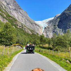 After a quick lunch back on board, we were out again for the coach trip to Briksdal glacier, part of the largest glacier in Europe. We were lucky that we had “troll” cars to take us to the top,Läs mer
