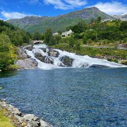 After a longer night’s sleep, we woke up moored in Hellesylt right opposite the waterfall. A leisurely breakfast and quick wander around this very small town before catching the catamaran alongLäs mer