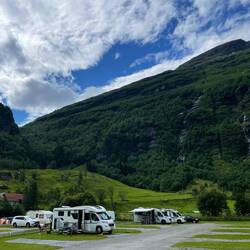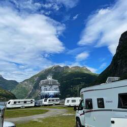 Pulling in to the dock at Geiranger, the harbour was dominated by the NCL Prima! Right next to the harbour was a large campsite, so we popped in to grab a site map! There wasn’t much at groundLäs mer