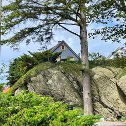 After the beach we headed for the southern tip of the island at Skudeneshavn, a pretty white boarded village, with a moonstone that isn’t native to the area! We sought out a lovely old style cafeLäs mer