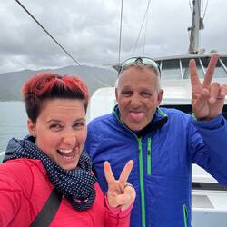 Witer geits mitem Katamaran id Fjordlandschaft! Fasch allei es Schiff für üs. Zersch het üs der Captain es Barbecue zuebereitet, spöter het d Crew für üs Greenshellmussels zuebereitet uRead more