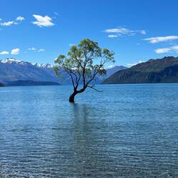 Wanaka isches härzigs, chlises Stedtli wo mir e Stopp ilege. E Spaziergang am Strand no, e Sterchig mitemne Ceasersalt, Ichoufe im New World, Muggespray und Rüggewehtablette ir Apothek poschte und der Wasserboum bestuune.