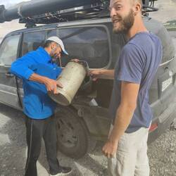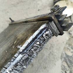 Heute morgen habe ich mich gleich um den kaputten Kühler gekümmert ein einheimischer hat mir beim vorbeilaufen angeboten Lötzeug zu bringen und ein anderer die gebrochenen Halter angeschweißt undOkumaya devam et