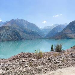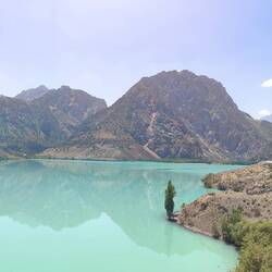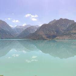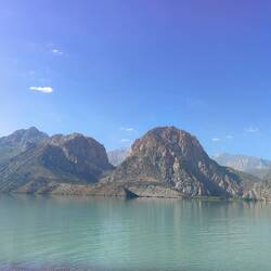 Dann ging es runter von der Hauptstraße und ca. 24km bis zum Iskanderkul hier ist die Straße recht schnell wieder unbefestigt aber oben angekommen entschädigt der Ausblick, was ein traumhafterLes mer