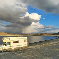 Ich fahre die Teerstraße bis kurz vor Tsagaannuur hier bleibe ich an einen See mit Millionen Mücken stehen um nochmal ein ruhigen Abend zu verbringen und das Wohnmobil ordentlich innen putzen.