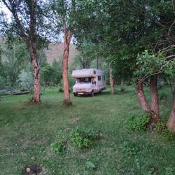 Bei dem 700 jährigen baum gab es dann eine Abkühlung ich konnte in Ruhe Abendessen machen und hatte erst Gesellschaft von einem Hund und später von einem Paar aus Almaty.