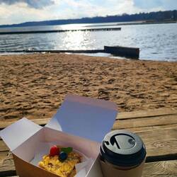 In Warschau habe ich mir noch eine neue Festplatte und ein Stativ gekauft. In Ostroleck habe ich kurz für Kaffee und Kuchen gehalten, dann ging es weiter bis zu diesem See. (Siehe Fotos)
