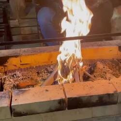 We hadden in het begin van onze reis een blokje hout gekregen en het was de bedoeling om het met zo veel mogelijk mensen aan te steken. (In Finland)
