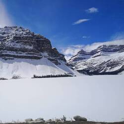 Als nächsts simmer zum peyto see gfahre. De hed üs d irina empfohle gha. Er esch zwar au zuegfrore gsi, aber d ussich esch trotzdem spektakulär gsi ond d wanderig dure schnee sehr amüsant 😅🙈