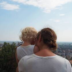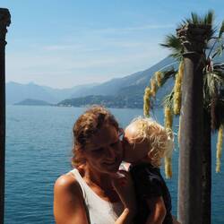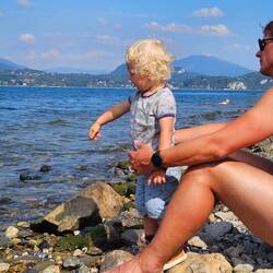 Petite sieste de 1h30 en poussette au bord du lac majeur pendant que papa et maman se reposent et se baignent.