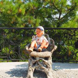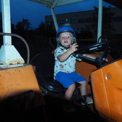 Nous mangeons dans une sorte de foire un super burger et auguste une petite saucisseLeer más