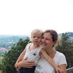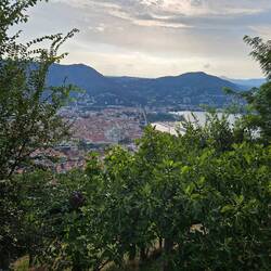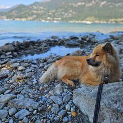 Petite montée avec la poussette. Très belle vue sur le lac. Pumba est heureux d'enfin pouvoir marcher sans laisse