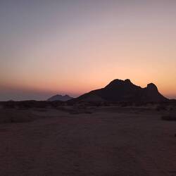 Alba molto bella al Namtib dove finiamo tutte le nostre provviste a colazione e chiudiamo per l'ultima volta le tende. Arrivo in tarda serata a Van Zylsrus, dove tra varie peripezie abbiamo unaBaca lagi
