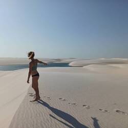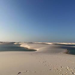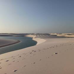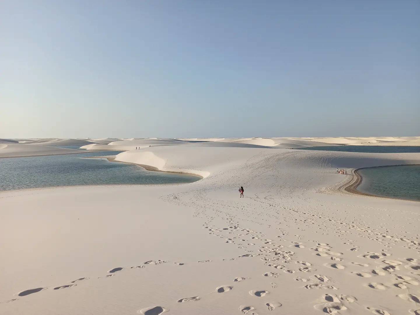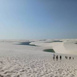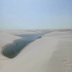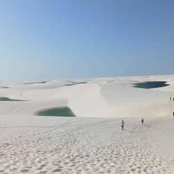 Visita al Parco dei Lencois Maranhenses, una sorta di paradiso terrestre di dune di sabbia bianchissima e pozze d'acqua azzurra e dolce, attraverso in parte in jeep, in parte a piedi.