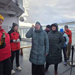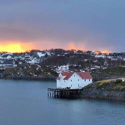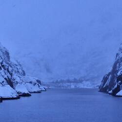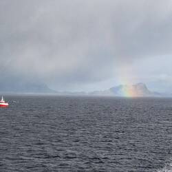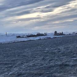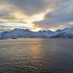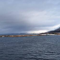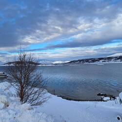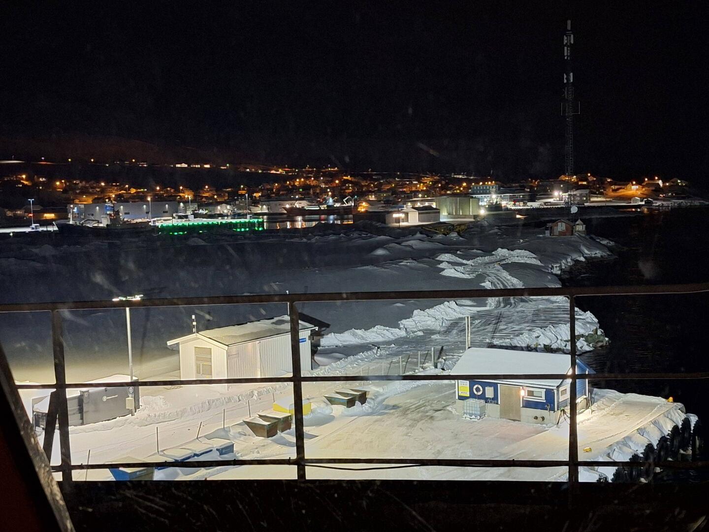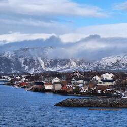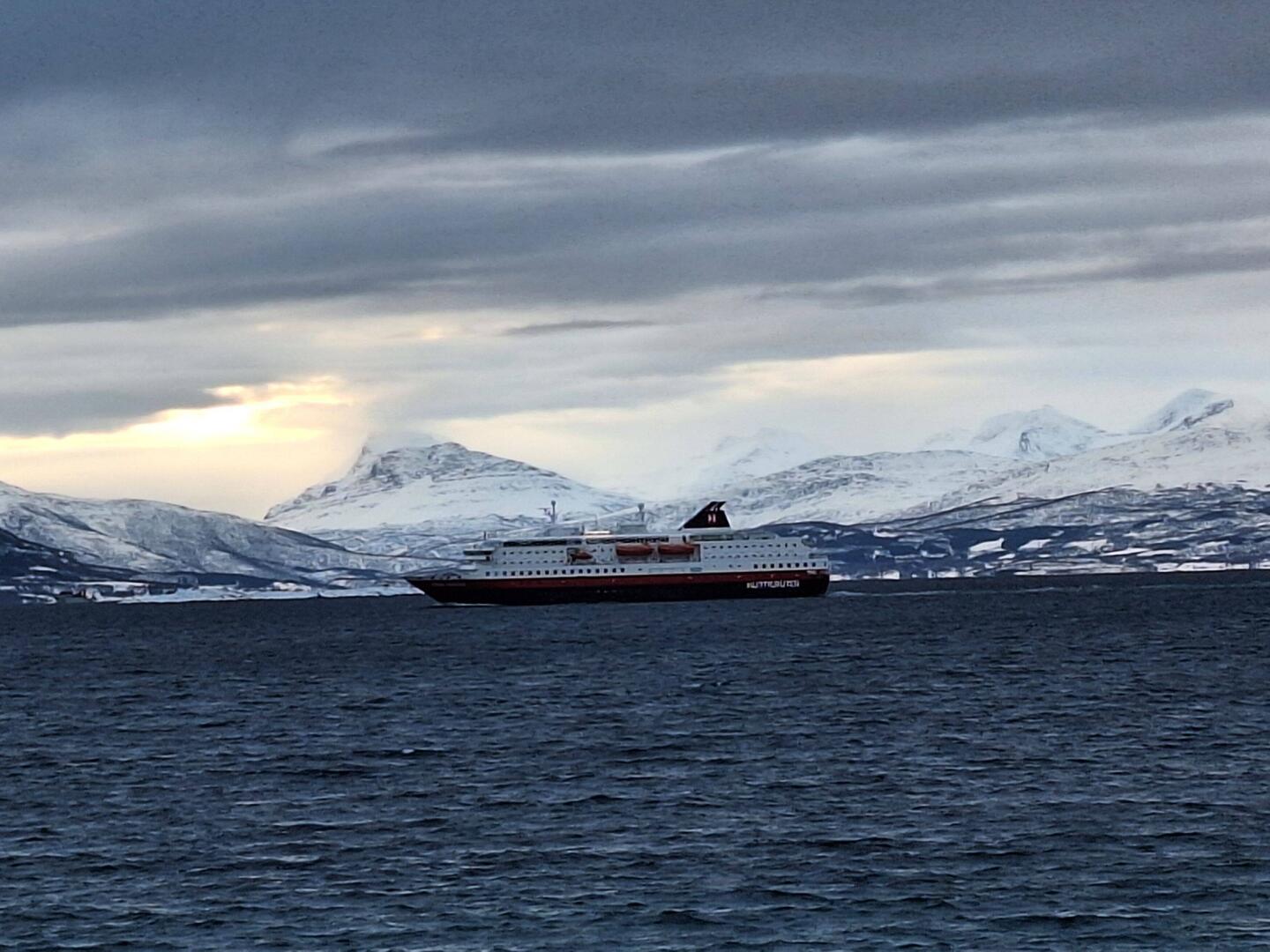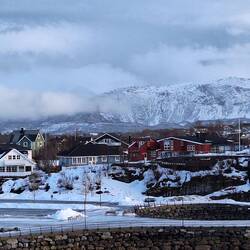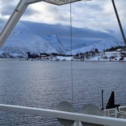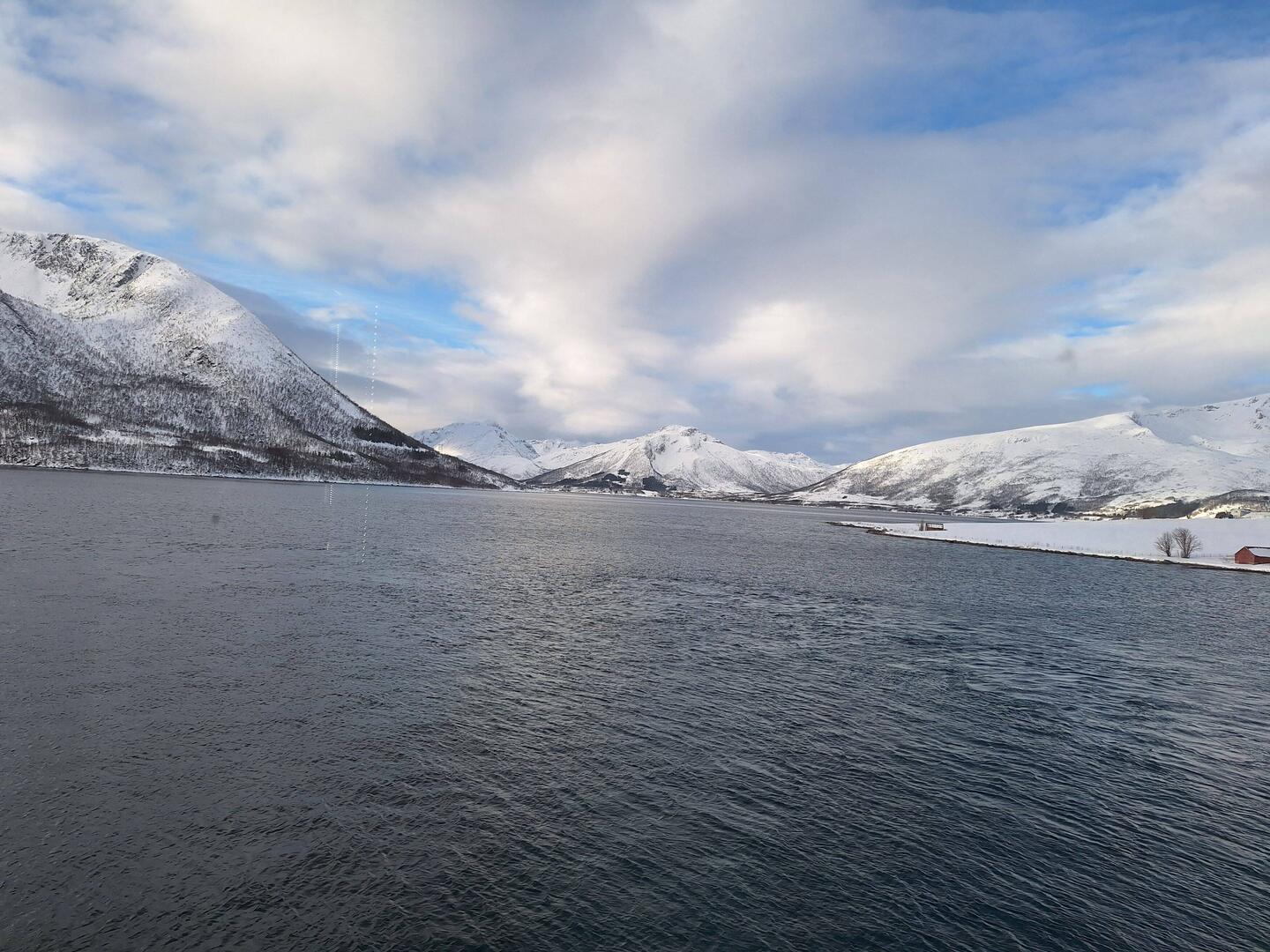 Der Sturm, der uns schon die ganze Nacht begleitet hat, verhindert ein Anlegen im Hafen von Hammerfest. Wir fahren weiter zum nächsten Hafen Ökstfjord.